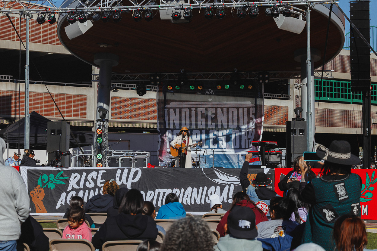 Indigenous Peoples’ Day 2025 served as a reminder for our people and the world that Indigenous communities have always and will continue to stand tall and proud in the face of great challenges. This was the third year NDN Collective hosted an Indigenous Peoples’ Day event in Main Street Square of Mni Luzahan, AKA Rapid City, consisting of a rally, march and free community concert.