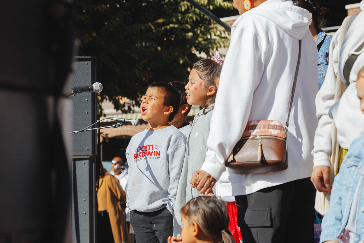 “We created this school because we wanted a place where our kids could be who they are and be unapologetically Indigenous everyday. They are very proud of who they are,” Mary Bowman, the Head of School said to the crowd. “We are the largest school of this type in the state of South Dakota with 70 students, kindergarten through third grade. I have so much gratitude for these students because they are carrying on our stories, our languages, and are our culture bearers, making sure that our ways live on for future generations.”