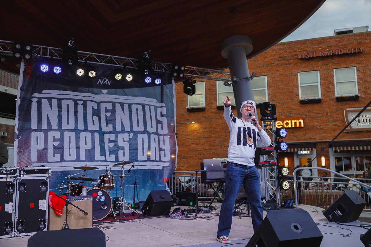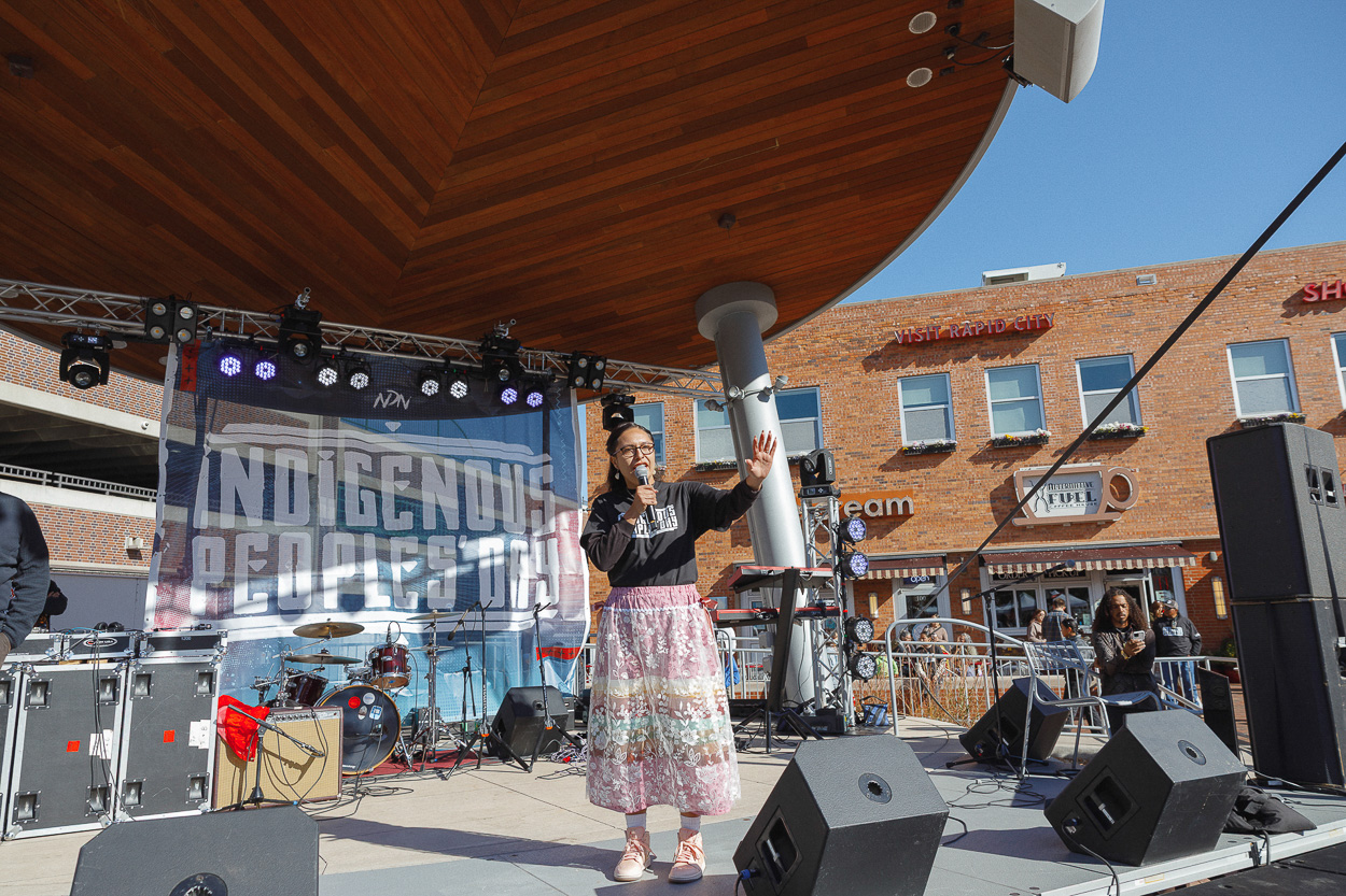 “Happy Indigenous Peoples’ Day!” Wizipan shouted for the crowd. “This is a time for us to look back at our history, but more importantly it’s a time for us to look forward at what we can do, at what the possibilities are.”